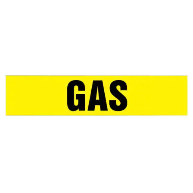 Roll | - | Obsolete | Pre-Printed | English | Pipe | Flammable Fluids | Text Only | Gas | No Symbol | Yellow | Black | 30.000' (914.40cm) | 8.000 (203.20mm) | - | Indoor/Outdoor | Vinyl | Snap On | 2.000 (50.80mm) | - | Rectangle | Abrasion Resistant, Dirt Resistant, Dust Resistant, Grease Resistant, UV Resistant, Water Resistant |
