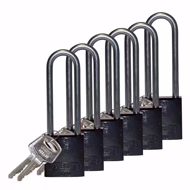 ALU-BLK-76ST-KA6PKALUM PADLOCK BLACK 76MM STL SHKL |