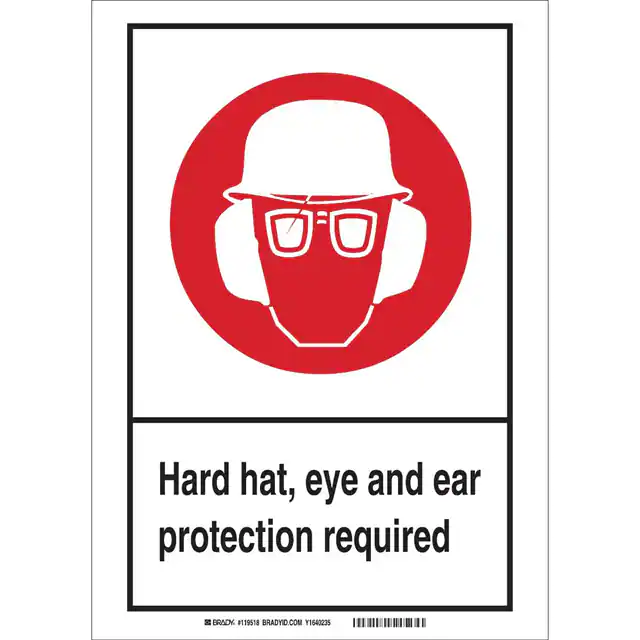 Box - Active Black and White Legend, Blue and White Background Notice Polyester Notice. Ear Protection.