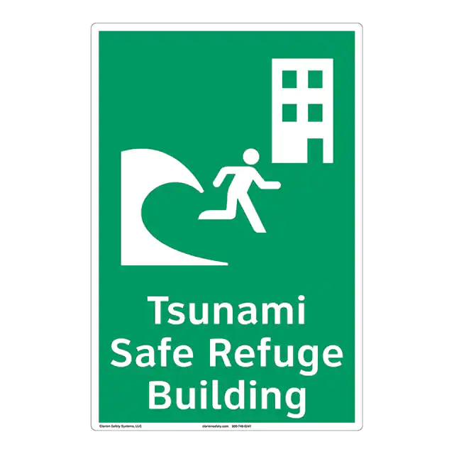 Box | - | Active | White Legend, Green Background | ANSI | Plastic | Tsunami Safe Refuge Building |